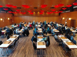 Vom 27. bis 29.12.2024 fand im Bürgerhaus Oberaußem das Bergheimer Winter-Open 2024 statt. Es nahmen 72 Teilnehmer*innen an diesem dreitägigen Turnier teil. Es war ein illustres Teilnehmerfeld, welches weitestgehend aus NRW anreiste. Lediglich Manfred Lenhardt kam aus Berlin und hatte die längste Anreise. Unter den Teilnehmer*innen waren drei Fide-Meister, welche das Turnier aber nicht gewinnen konnten. Das Teilnehmerfeld war gut durchgemischt. Der jüngste Teilnehmer Parhasith Chaganti kam aus Mönchengladbach und war gerade einmal 8 Jahre alt. Er belegte am Ende den bemerkenswerten 35. Platz. Der älteste Teilnehmer war Ivan Buller mit 86 Jahren und kam aus Bergheim. In der Endabrechnung belegte er den respektablen 46. Platz. Die Teilnehmer hatte eine Bedenkzeit von 90 Minuten für 40 Züge und 30 Minuten für die restliche Partie, und zusätzlich 30 Sekunden je Zug. Weitere Bilder sind rechts unter „Winteropen 2024“ zusehen.Winter-Open 2024