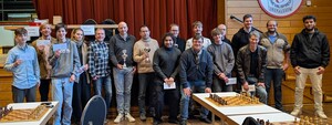 Mit 21 Teilnehmern war unsere diesjährige Vereinsmeisterschaft hervorragend besetzt, u.a. mit 7 Verbandsligaspielern. Letztendlich gab es keine Überraschungen, den diese Spieler belegten auch die sieben vorderen Plätze. Plätze 8 bis 14 gingen an Spieler der zweiten Mannschaft. Ab Platz 15 rangieren die Spieler der dritten Mannschaft. Schade, dass sich hier kein Vereinsmitglied überproportional entwickeln konnte. Einzige Ausnahme bildete Uta, die sich als Spielerin der dritten Mannschaft den 12. Platz erkämpfte und damit in die Phalanx der Spieler aus der zweiten Mannschaft eindringen konnte. Das Endergebnis konnte nicht spannender sein. Die ersten drei Plätze werden punktgleich von Max, Jürgen und Stephan mit 6,5 Punkten belegt. In der Zweitwertung (Buchholz) sind immer noch zwei Spieler (Max und Jürgen) punktgleich; erst in der Drittwertung (Sonneborg-Berger)!!! kristallisierte sich Max Houben gegenüber Jürgen Fuhs mit 1,25 Punkten Vorsprung als Vereinsmeister heraus. Die gesamte Tabelle kann wieder über den Informationsbereich eingesehen werden.Max Houben ist neuer Vereinsmeister